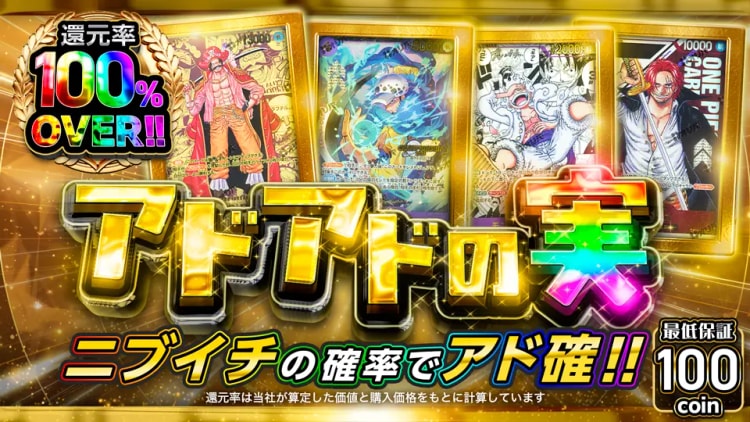 超大手DMMが運営するオリパサービス。サービス開始からまだ日が浅いものの、大手企業の信頼感は抜群です。ワンピースカードのオリパも取り扱いが増加中で、今後の成長に期待が持てます。